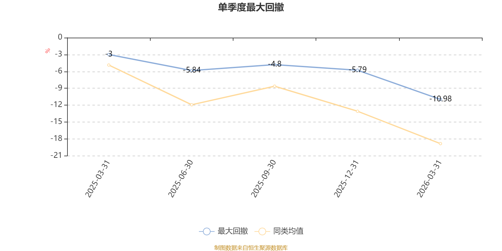 截至4月8日,基金成立以来最大回撤为12.96%。单季度最大回撤出现在2026年一季度,为10.98%。