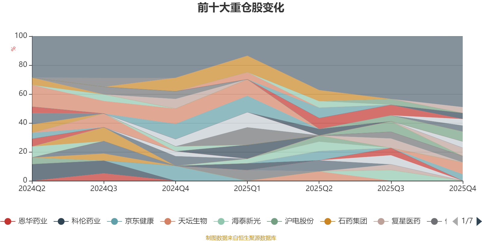 该基金持股集中度较高。截至2025年末,基金十大重仓股分别是瑞迈特、我武生物、济川药业、华特达因、云南白药、马应龙、普洛药业、百奥赛图、东诚药业、毕得医药。