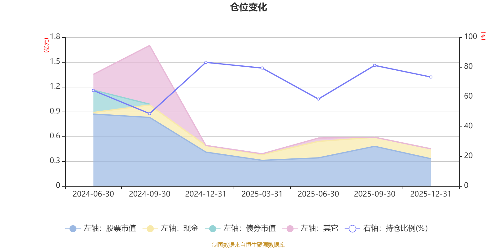 据定期报告数据统计,成立以来平均股票仓位为69.71%,同类平均为86.7%。2024年末基金达到83.09%的最高仓位,2024年三季度末最低,为48.66%。