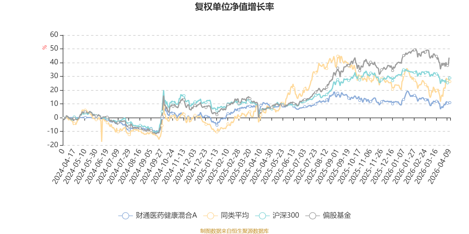 截至4月9日,财通医药健康混合A近三个月复权单位净值增长率为-4.11%,位于同类可比基金27/106;近半年复权单位净值增长率为-4.25%,位于同类可比基金19/106;近一年复权单位净值增长率为4.04%,位于同类可比基金99/104。