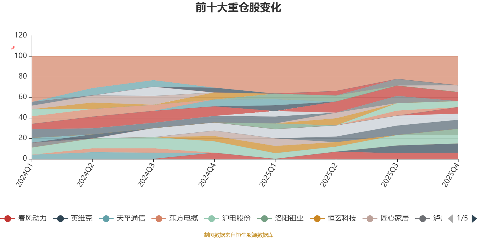 该基金持股集中度较高。截至2025年末,基金十大重仓股分别是英维克、新易盛、寒武纪、沪电股份、中际旭创、源杰科技、洛阳钼业、生益电子、春风动力、深南电路。