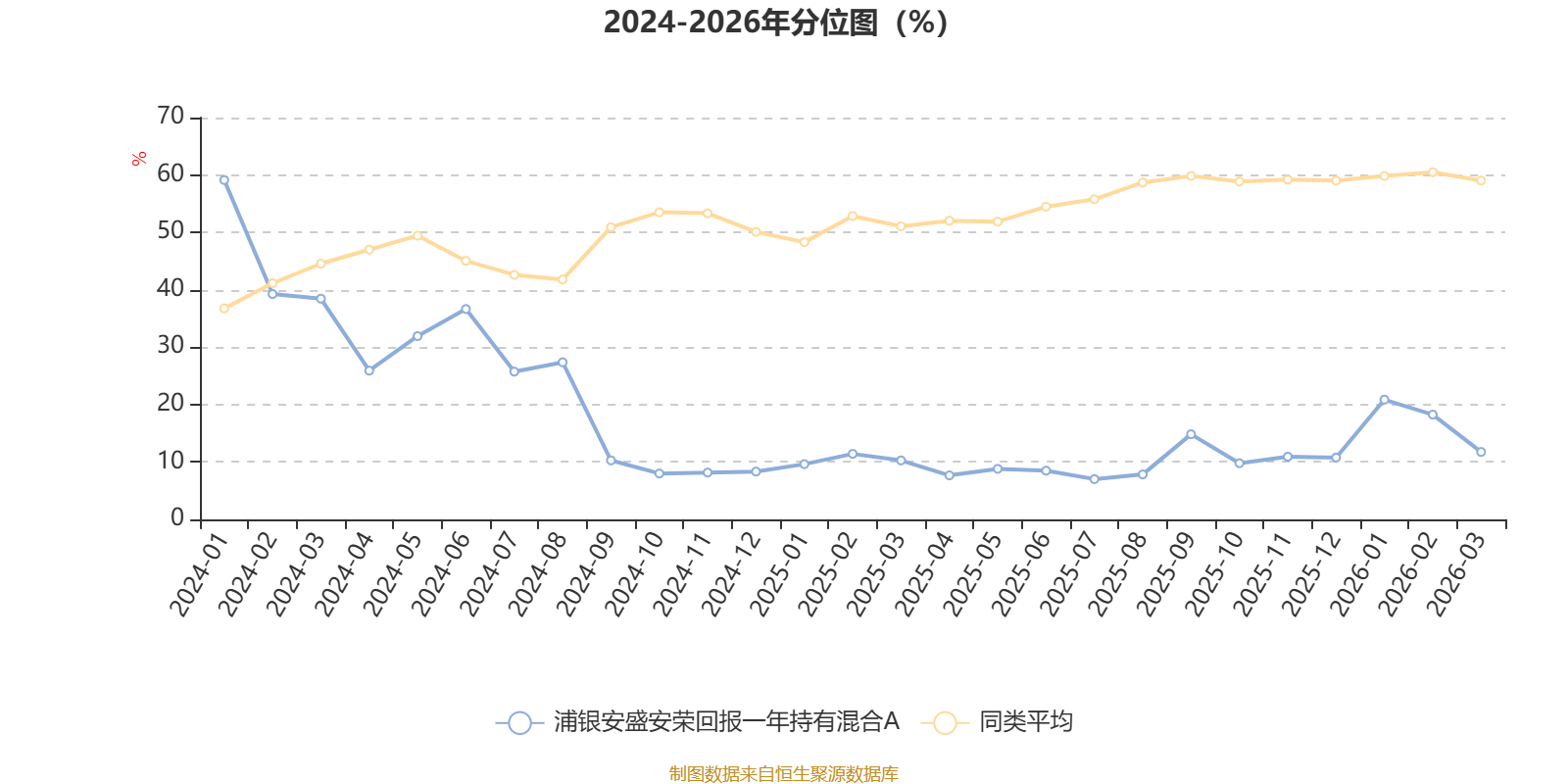 通过所选区间该基金净值增长率分位图,可以观察该基金与同类基金业绩比较情况。图为坐标原点到区间内某时点的净值增长率在同类基金中的分位数。