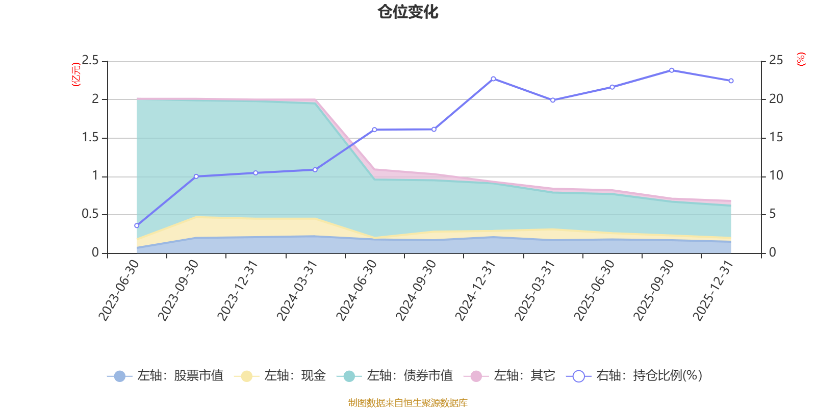 据定期报告数据统计,成立以来平均股票仓位为16.15%,同类平均为19.2%。2025年三季度末基金达到23.82%的最高仓位,2023年上半年末最低,为3.6%。