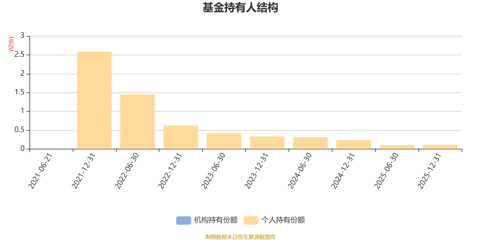 截至2025年12月31日,基金持有人共计311户,合计持有1137.13万份。其中管理人员工持有2.47万份,占比0.22%,个人投资者占比100.00%。
