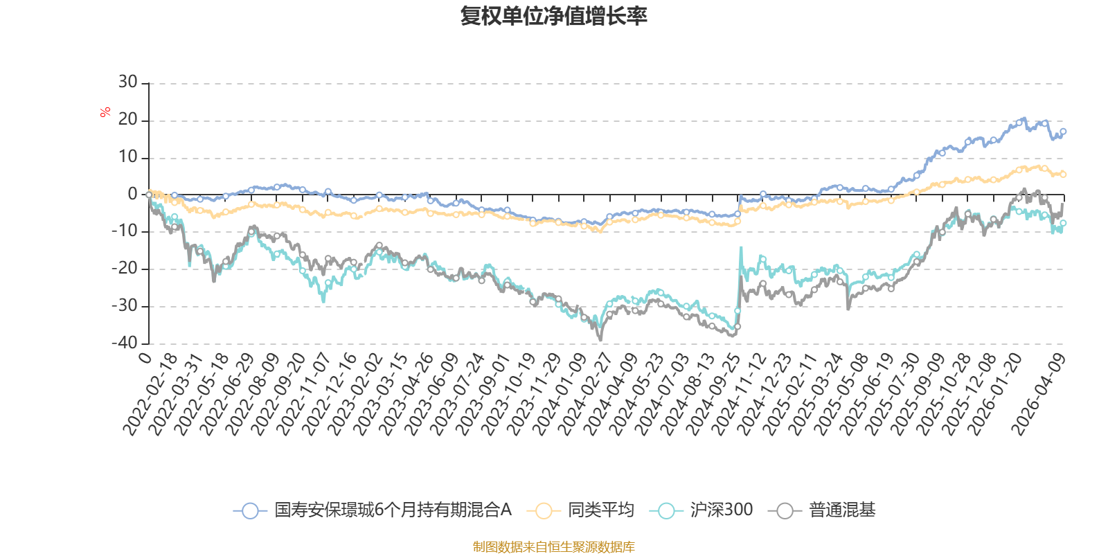 截至4月9日,国寿安保璟珹6个月持有期混合A近三个月复权单位净值增长率为-0.88%,位于同类可比基金503/629;近半年复权单位净值增长率为4.09%,位于同类可比基金65/629;近一年复权单位净值增长率为15.77%,位于同类可比基金73/629;近三年复权单位净值增长率为16.90%,位于同类可比基金115/581。