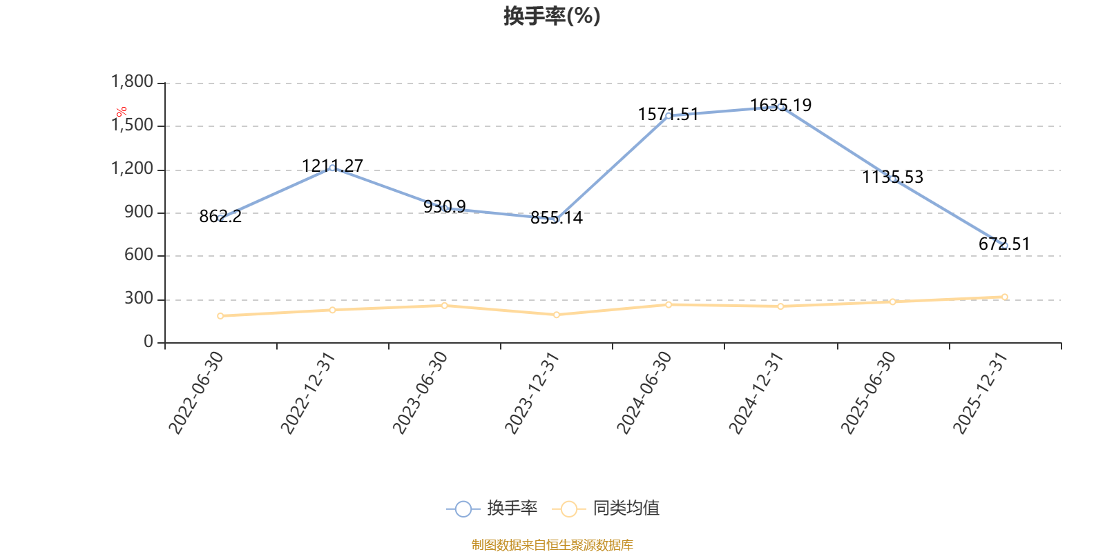 截至2025年12月31日,基金最近一年换手率约1847.47%,持续高于同类均值。