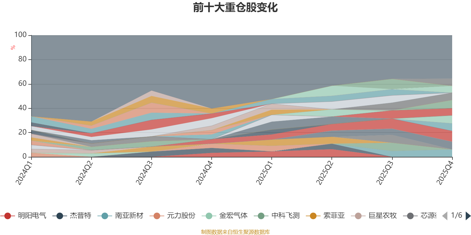 基金管理人在年报中表示,操作上,一是大国博弈下,AI 算力与半导体自主可控在全球算力Capex 高增与国产化政策推动下处于长期上升通道。二是,工业金属与优势制造则在逆全球化、AI用铜铝、电力与数据中心投资共振中,叠加供给端“反内卷”与资本开支受限,构成2026 年性价比高的顺周期方向。以铜铝为核心的工业金属+优势工程机械与工业装备出海是兼具景气与估值优势的组合。三是,内需修复,银发经济与育儿补贴则对医疗健康、养老服务、家电家居适老化、婴童与教育等细分赛道提供中长期“政策+人口”双重支撑,具备长坡厚雪属性。