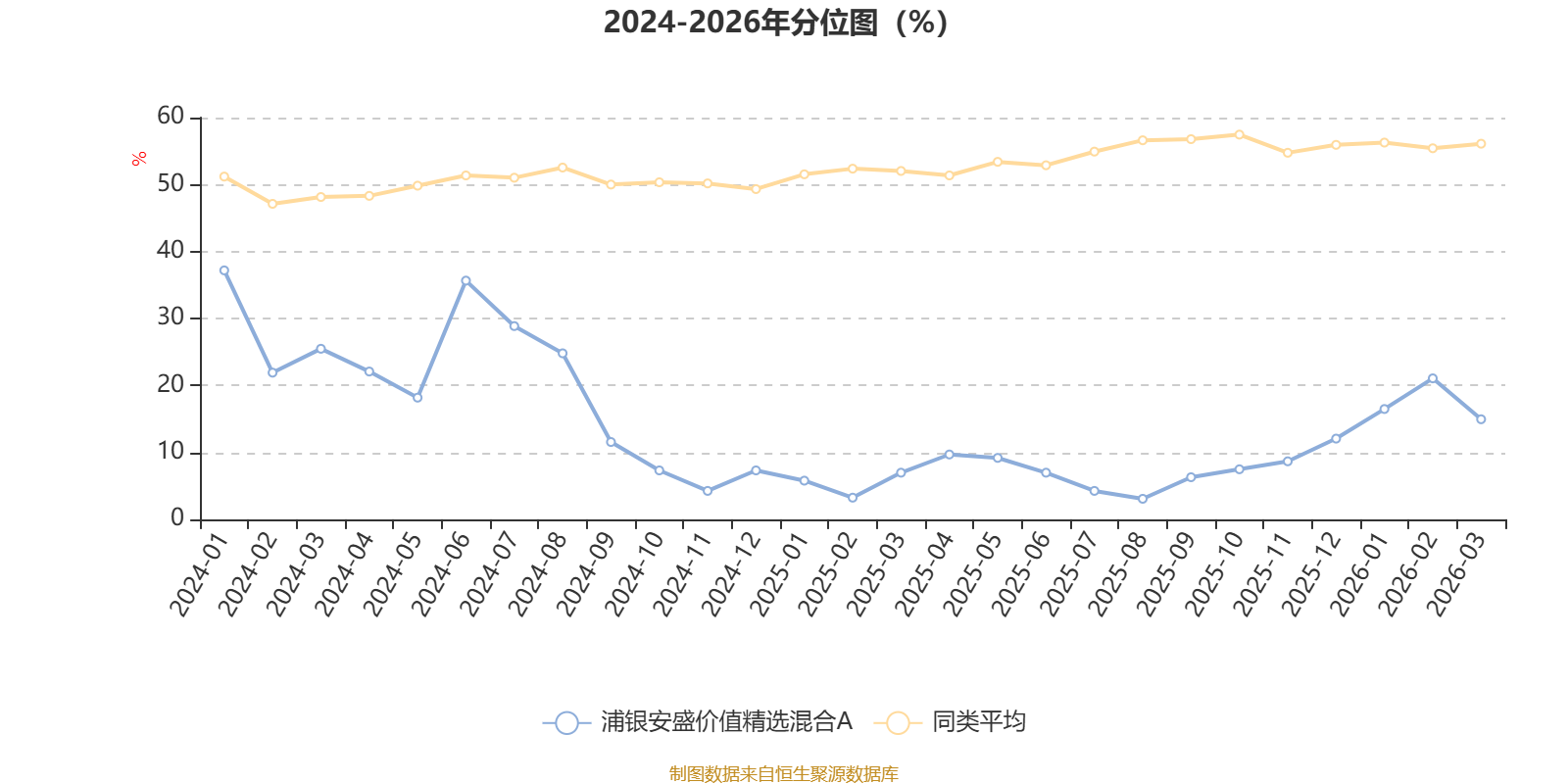 通过所选区间该基金净值增长率分位图,可以观察该基金与同类基金业绩比较情况。图为坐标原点到区间内某时点的净值增长率在同类基金中的分位数。