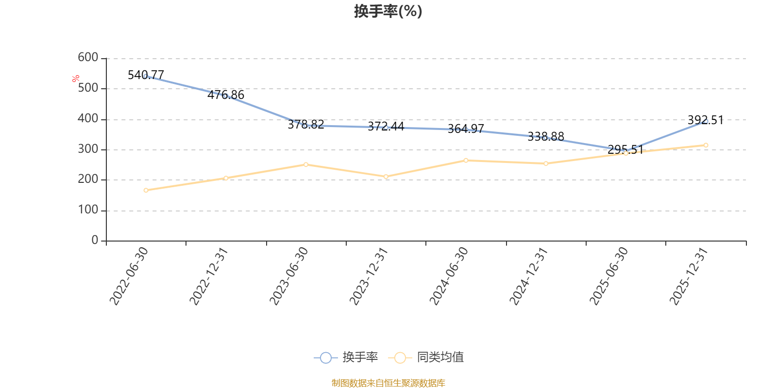 截至2025年12月31日,基金最近一年换手率约685.95%,持续高于同类均值。
