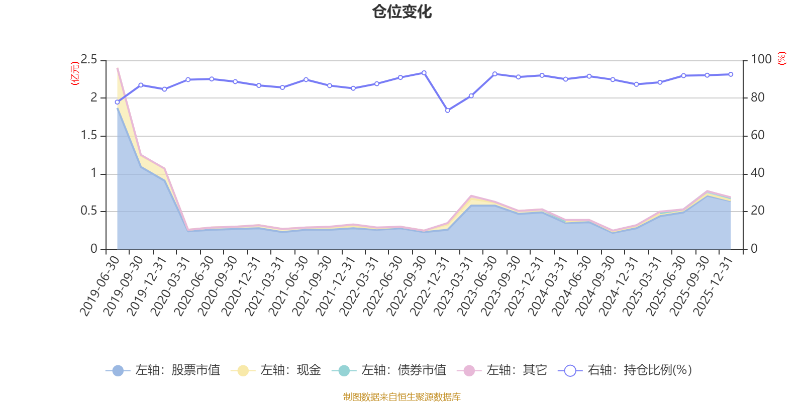 据定期报告数据统计,近三年平均股票仓位为90.08%,同类平均为84.04%。2022年三季度末基金达到93.4%的最高仓位,2022年末最低,为73.5%。