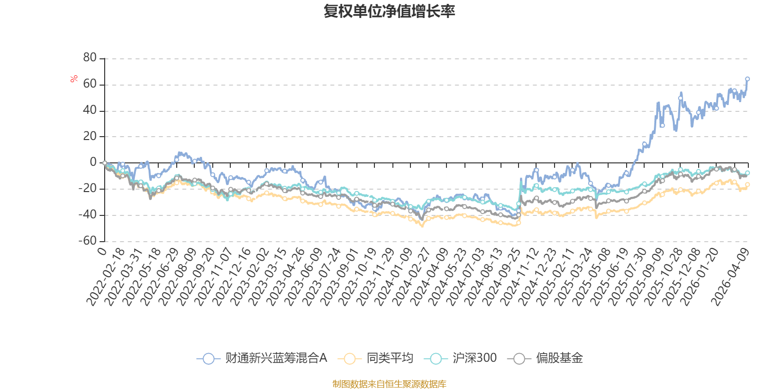 截至4月9日,财通新兴蓝筹混合A近三个月复权单位净值增长率为14.62%,位于同类可比基金27/689;近半年复权单位净值增长率为20.20%,位于同类可比基金57/689;近一年复权单位净值增长率为120.65%,位于同类可比基金17/685;近三年复权单位净值增长率为71.42%,位于同类可比基金24/417。