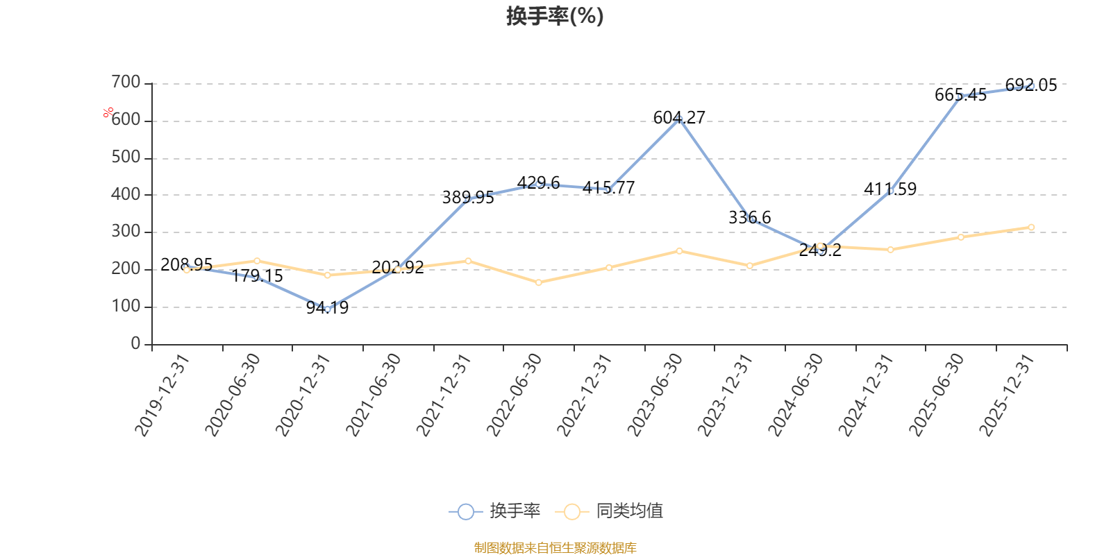 截至2025年12月31日,基金最近一年换手率约1351.59%,持续1年高于同类均值。