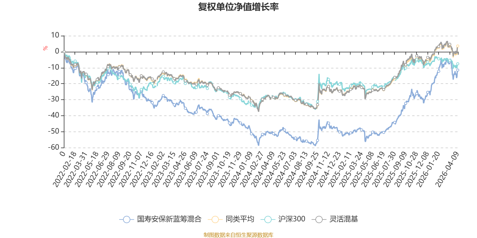 截至4月9日,国寿安保新蓝筹混合近三个月复权单位净值增长率为3.86%,位于同类可比基金236/1287;近半年复权单位净值增长率为15.29%,位于同类可比基金120/1286;近一年复权单位净值增长率为98.99%,位于同类可比基金82/1286;近三年复权单位净值增长率为26.85%,位于同类可比基金383/1286。