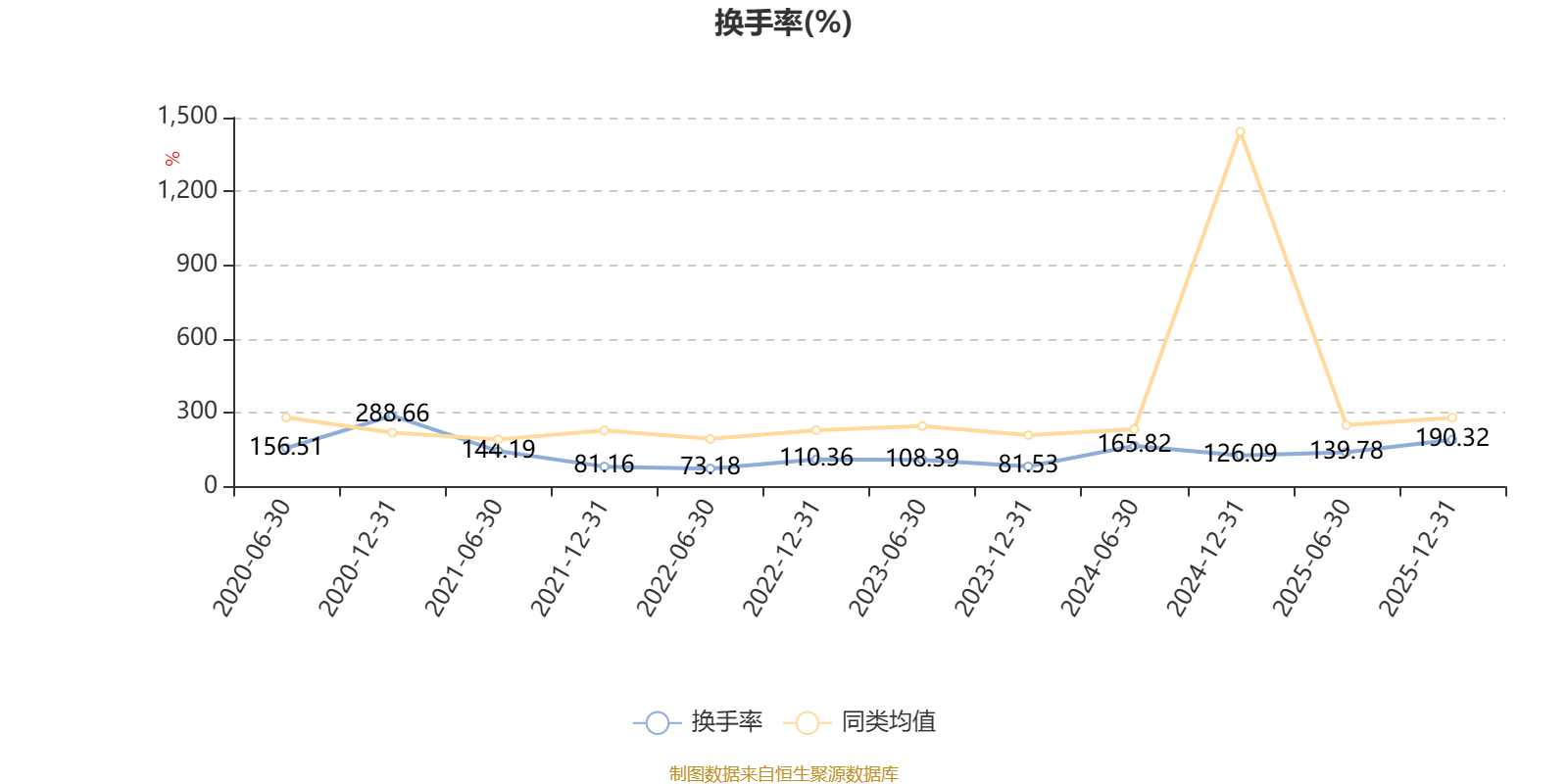 截至2025年12月31日,基金最近一年换手率约328.28%,持续5年低于同类均值。