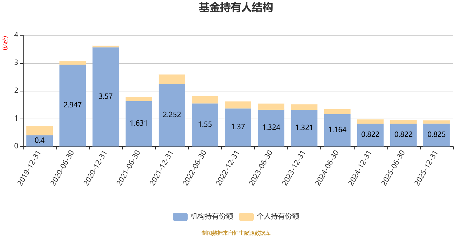截至2025年12月31日,基金持有人共计2448户,合计持有9381.24万份。其中管理人员工持有4.63万份,占比0.05%,机构持有份额占比87.97%,个人投资者占比12.03%。