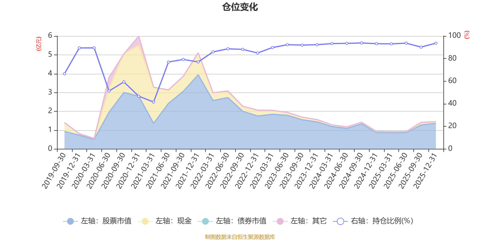 据定期报告数据统计,近三年平均股票仓位为92.56%,同类平均为72.57%。2024年三季度末基金达到93.84%的最高仓位,2021年一季度末最低,为41.54%。