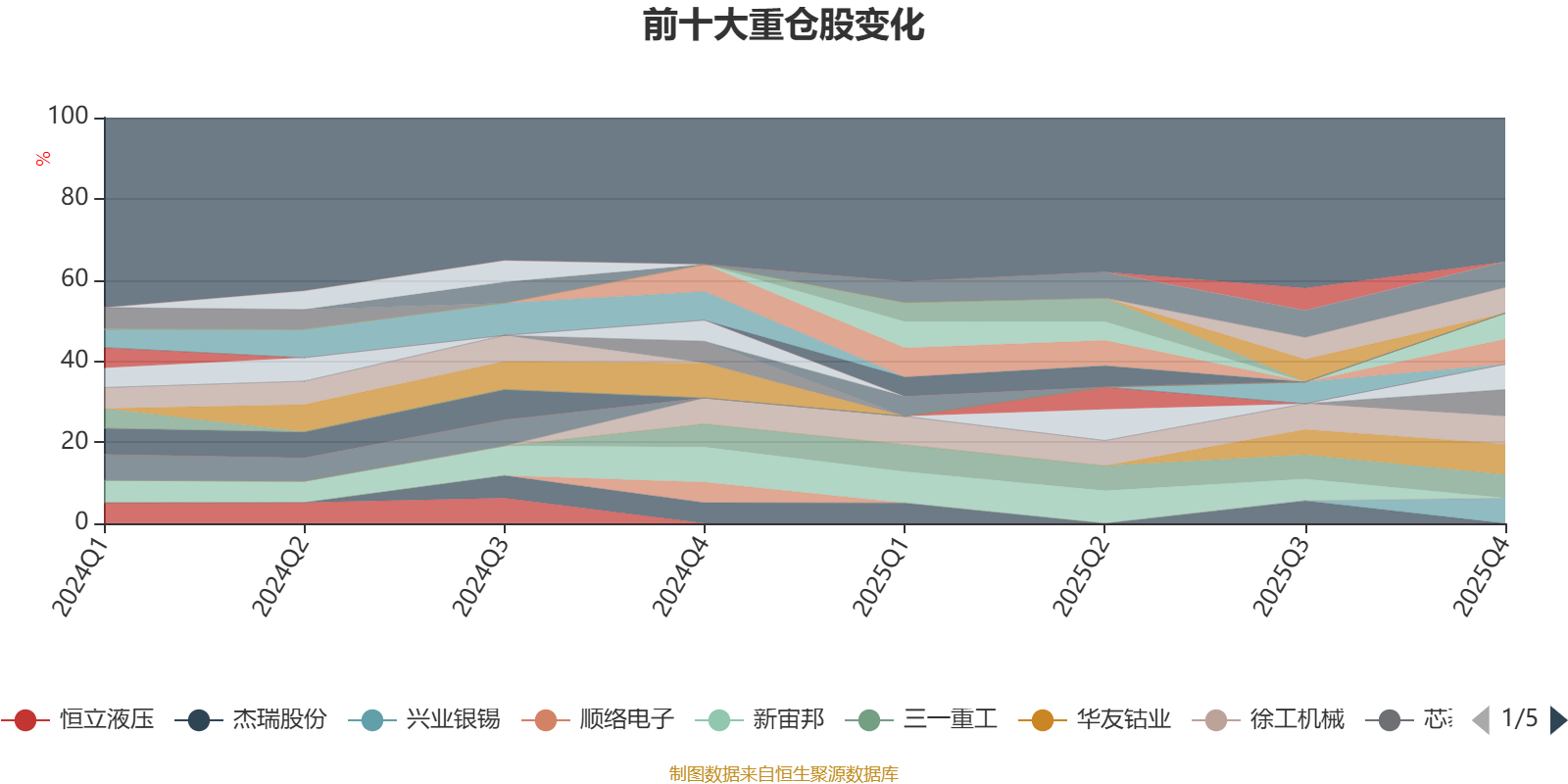 该基金持股集中度较高。截至2025年末,基金十大重仓股分别是华友钴业、徐工机械、芯碁微装、山推股份、紫金矿业、赤峰黄金、东山精密、兴业银锡、中熔电气、三一重工。