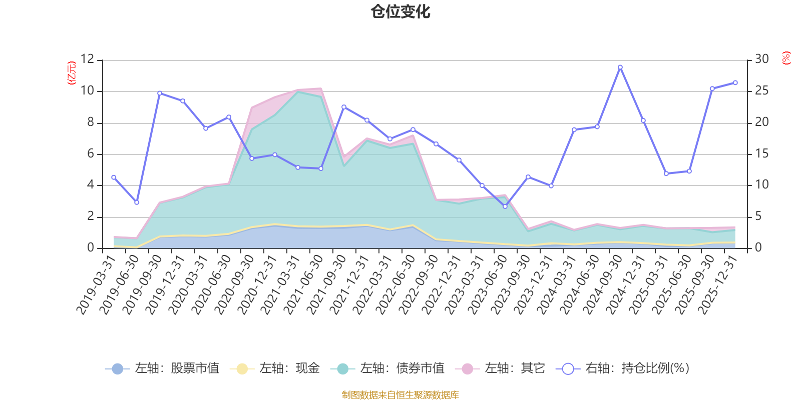 据定期报告数据统计,近三年平均股票仓位为16.79%,同类平均为19.2%。2024年三季度末基金达到28.85%的最高仓位,2023年上半年末最低,为6.66%。