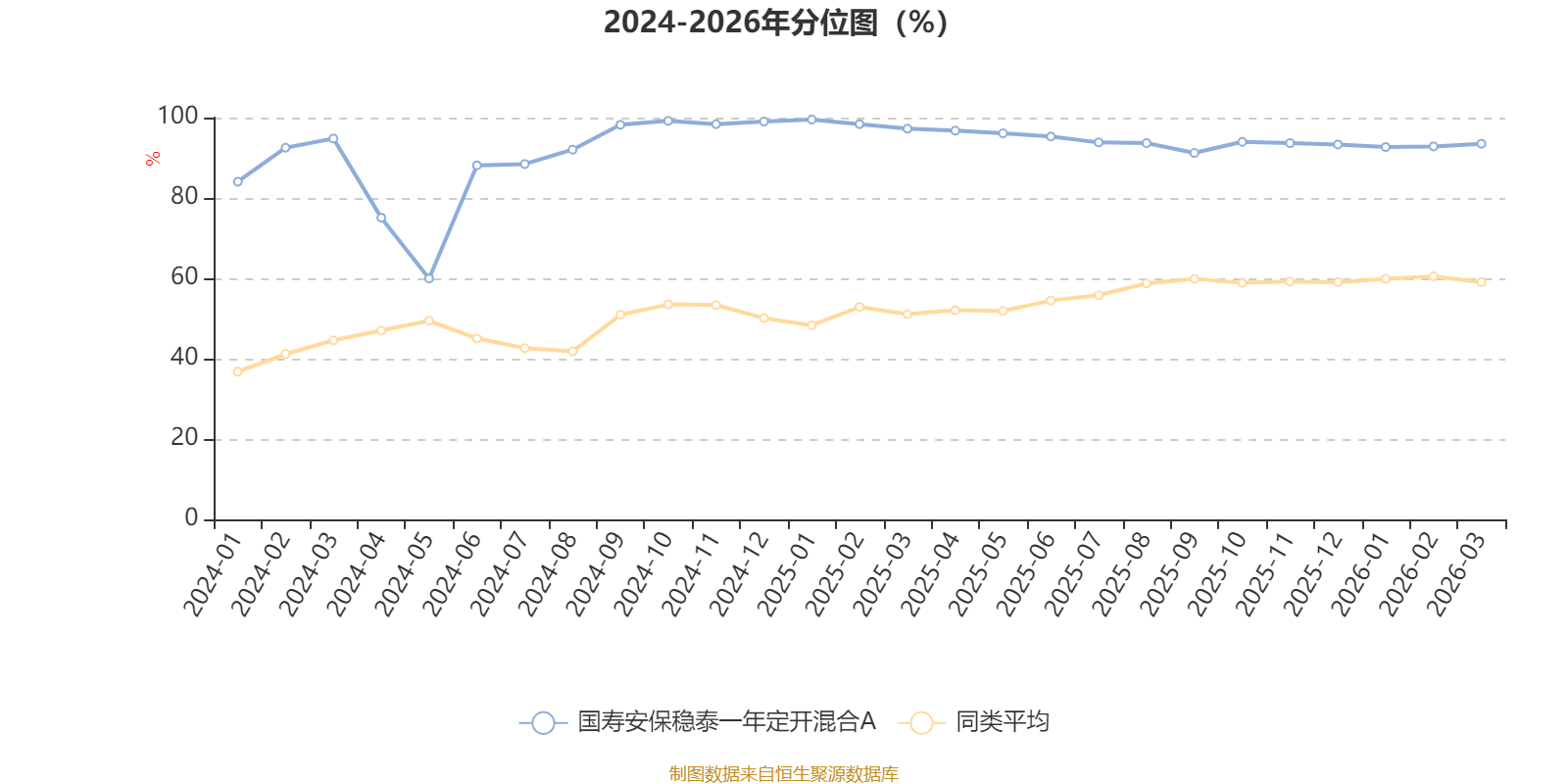 通过所选区间该基金净值增长率分位图,可以观察该基金与同类基金业绩比较情况。图为坐标原点到区间内某时点的净值增长率在同类基金中的分位数。