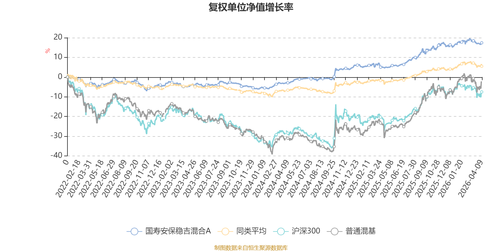 截至4月9日,国寿安保稳吉混合A近三个月复权单位净值增长率为-0.40%,位于同类可比基金433/629;近半年复权单位净值增长率为1.34%,位于同类可比基金276/629;近一年复权单位净值增长率为12.09%,位于同类可比基金120/629;近三年复权单位净值增长率为22.84%,位于同类可比基金49/581。