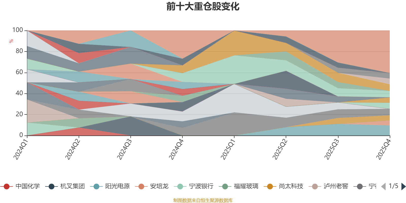 该基金持股集中度较高。截至2025年末,基金十大重仓股分别是阳光电源、立讯精密、宁德时代、贵州茅台、扬农化工、中际旭创、申菱环境、安徽合力、安培龙、尚太科技。