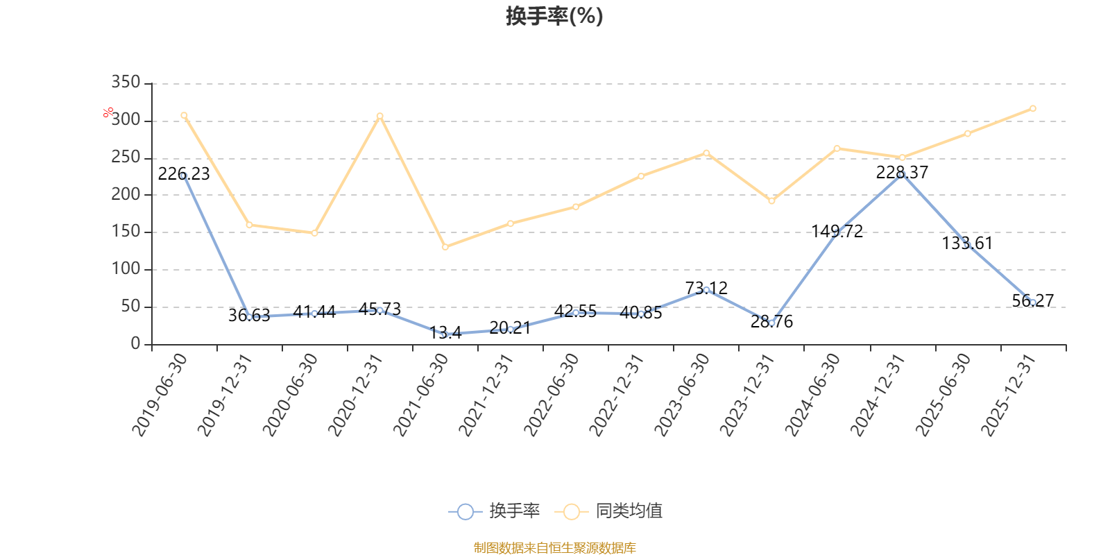 截至2025年12月31日,基金最近一年换手率约161.31%,持续低于同类均值。