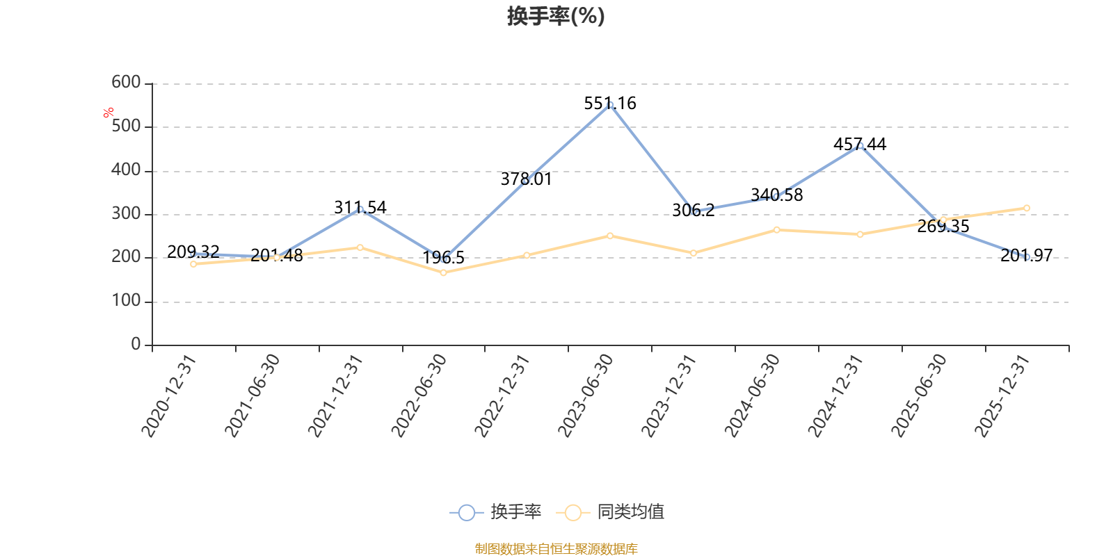 截至2025年12月31日,基金最近一年换手率约479.69%,持续1年低于同类均值。