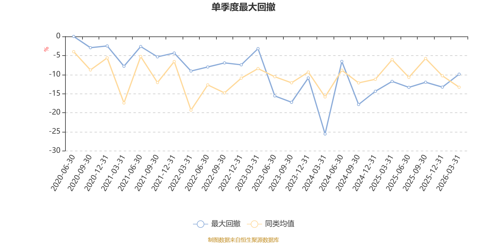 截至4月8日,基金近三年最大回撤为44.32%,同类可比基金排名340/392。单季度最大回撤出现在2024年一季度,为25.58%。