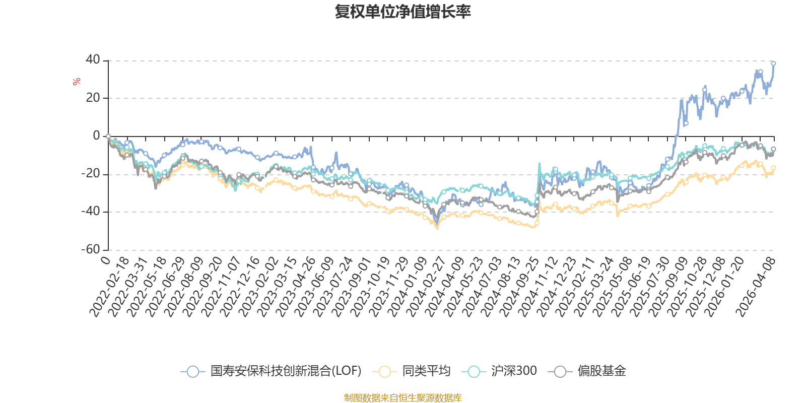 截至4月8日,国寿安保科技创新混合(LOF)近三个月复权单位净值增长率为13.87%,位于同类可比基金29/689;近半年复权单位净值增长率为15.92%,位于同类可比基金75/689;近一年复权单位净值增长率为106.24%,位于同类可比基金30/685;近三年复权单位净值增长率为46.80%,位于同类可比基金52/417。