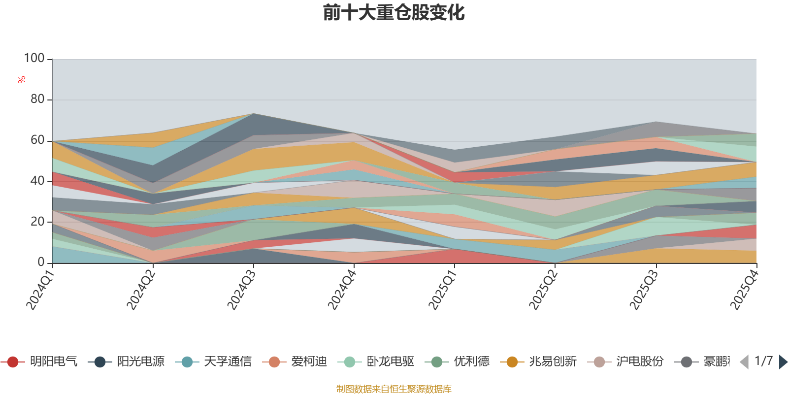 该基金持股集中度较高。截至2025年末,基金十大重仓股分别是生益科技、新易盛、四方股份、天华新能、鹏辉能源、兆易创新、沪电股份、宁德时代、仕佳光子、晶晨股份。