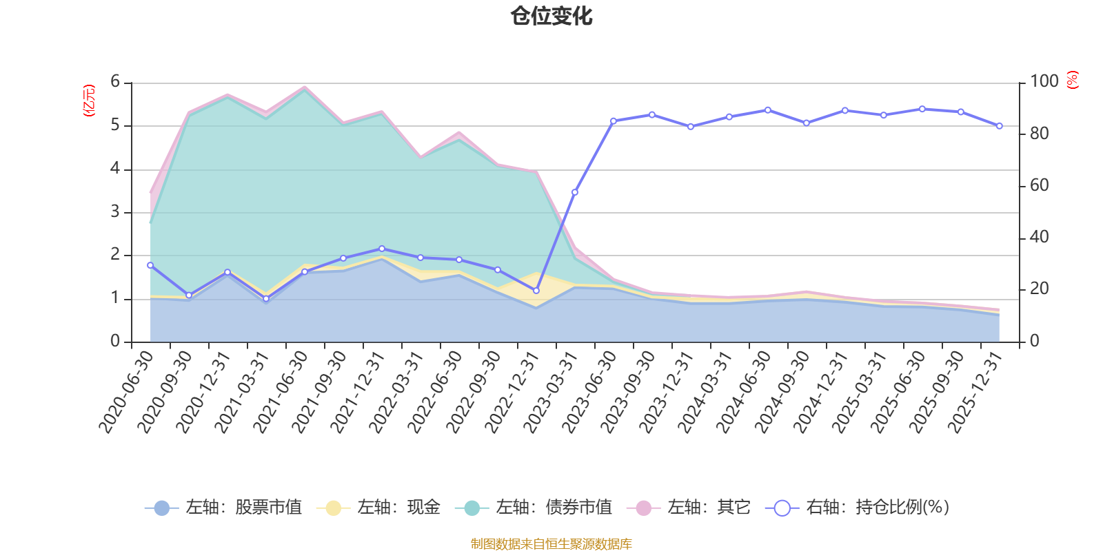 据定期报告数据统计,近三年平均股票仓位为84.42%,同类平均为84.04%。2025年上半年末基金达到89.87%的最高仓位,2021年一季度末最低,为16.71%。