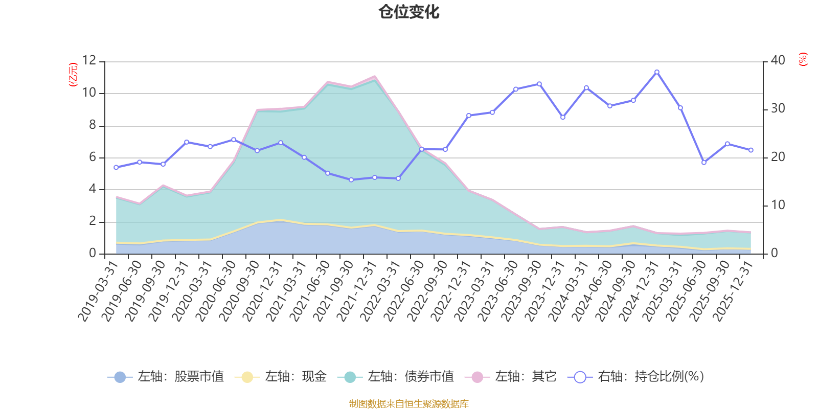 据定期报告数据统计,近三年平均股票仓位为29.67%,同类平均为19.2%。2024年末基金达到37.79%的最高仓位,2021年三季度末最低,为15.38%。