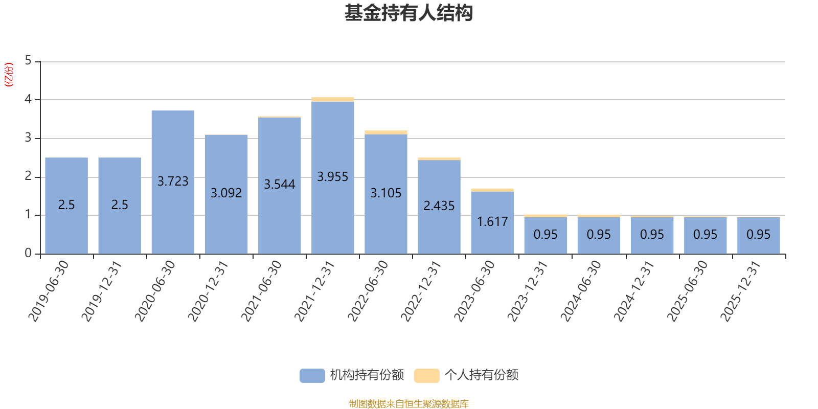 截至2025年12月31日,基金持有人共计153户,合计持有9642.96万份。其中管理人员工持有451份,机构持有份额占比98.53%,个人投资者占比1.47%。