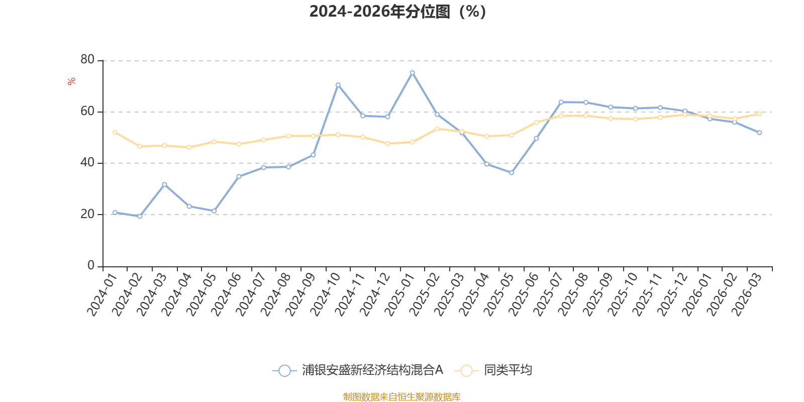 通过所选区间该基金净值增长率分位图,可以观察该基金与同类基金业绩比较情况。图为坐标原点到区间内某时点的净值增长率在同类基金中的分位数。