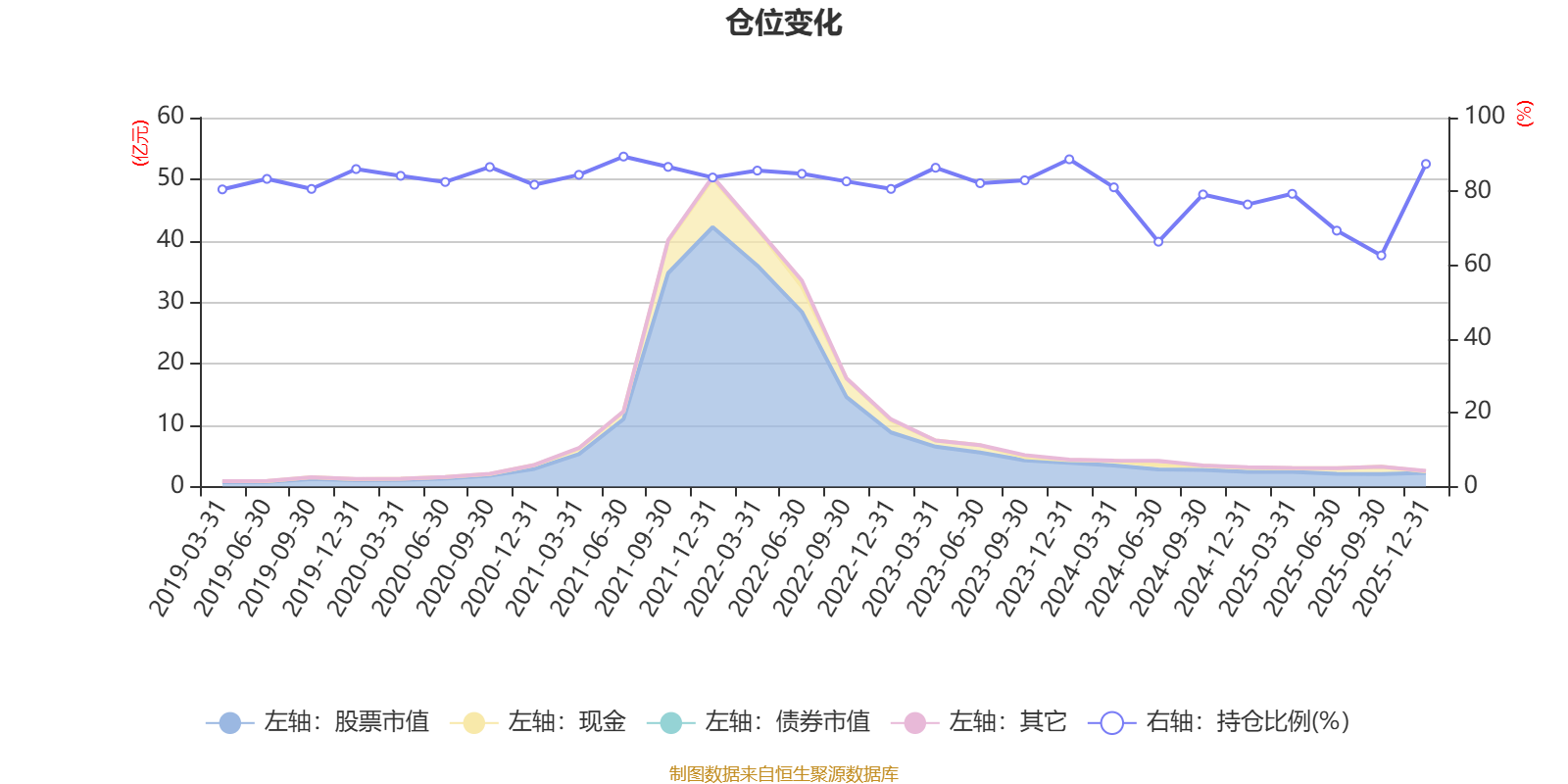 据定期报告数据统计,近三年平均股票仓位为78.52%,同类平均为72.57%。2021年上半年末基金达到89.44%的最高仓位,2025年三季度末最低,为62.64%。