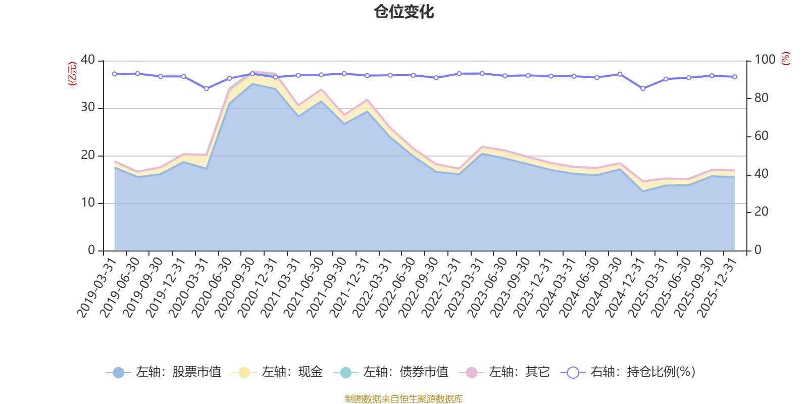 据定期报告数据统计,近三年平均股票仓位为91.27%,同类平均为87.64%。2023年一季度末基金达到93.25%的最高仓位,2020年一季度末最低,为85.29%。