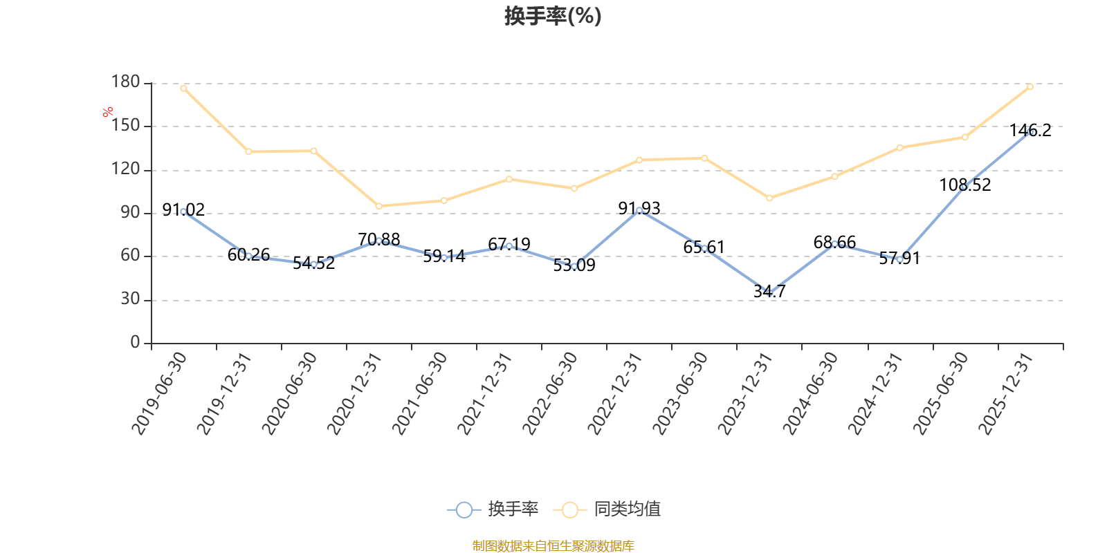 截至2025年12月31日,基金最近一年换手率约255.6%,持续低于同类均值。