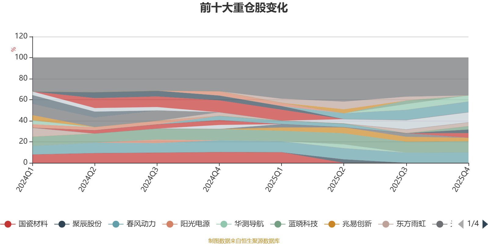 该基金持股集中度较高。截至2025年末,基金十大重仓股分别是蓝晓科技、热景生物、春风动力、悦康药业、中际旭创、宁德时代、新易盛、东山精密、兆易创新、应流股份。