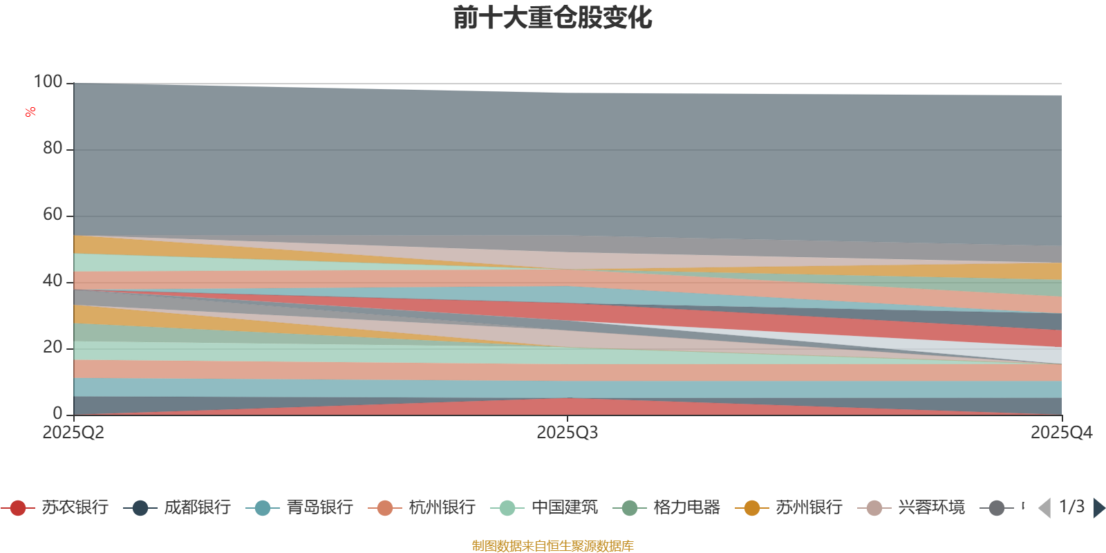 该基金持股集中度较高。截至2025年末,基金十大重仓股分别是齐鲁银行、渝农商行、青岛银行、成都银行、中国交通建设、常熟银行、江苏银行、重庆百货、杭州银行、南京银行。