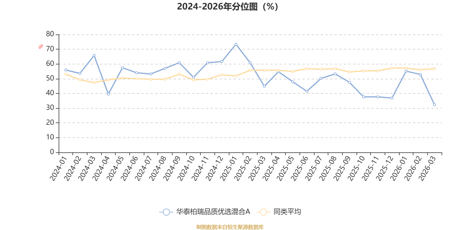 通过所选区间该基金净值增长率分位图,可以观察该基金与同类基金业绩比较情况。图为坐标原点到区间内某时点的净值增长率在同类基金中的分位数。