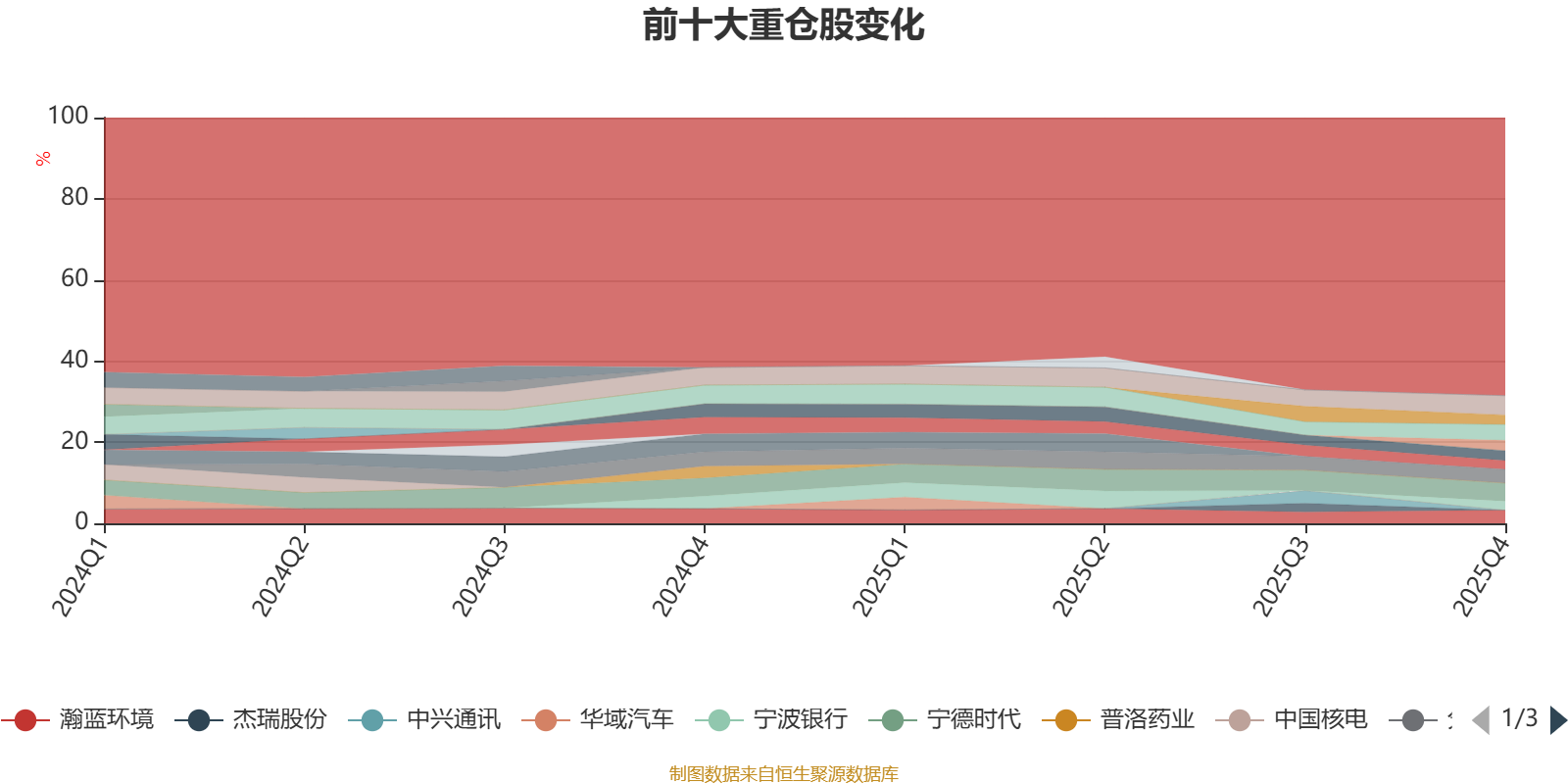 截至2025年末,基金十大重仓股分别是海尔智家、宁德时代、美的集团、分众传媒、瀚蓝环境、宝丰能源、伊利股份、立讯精密、正泰电器、宁波银行。