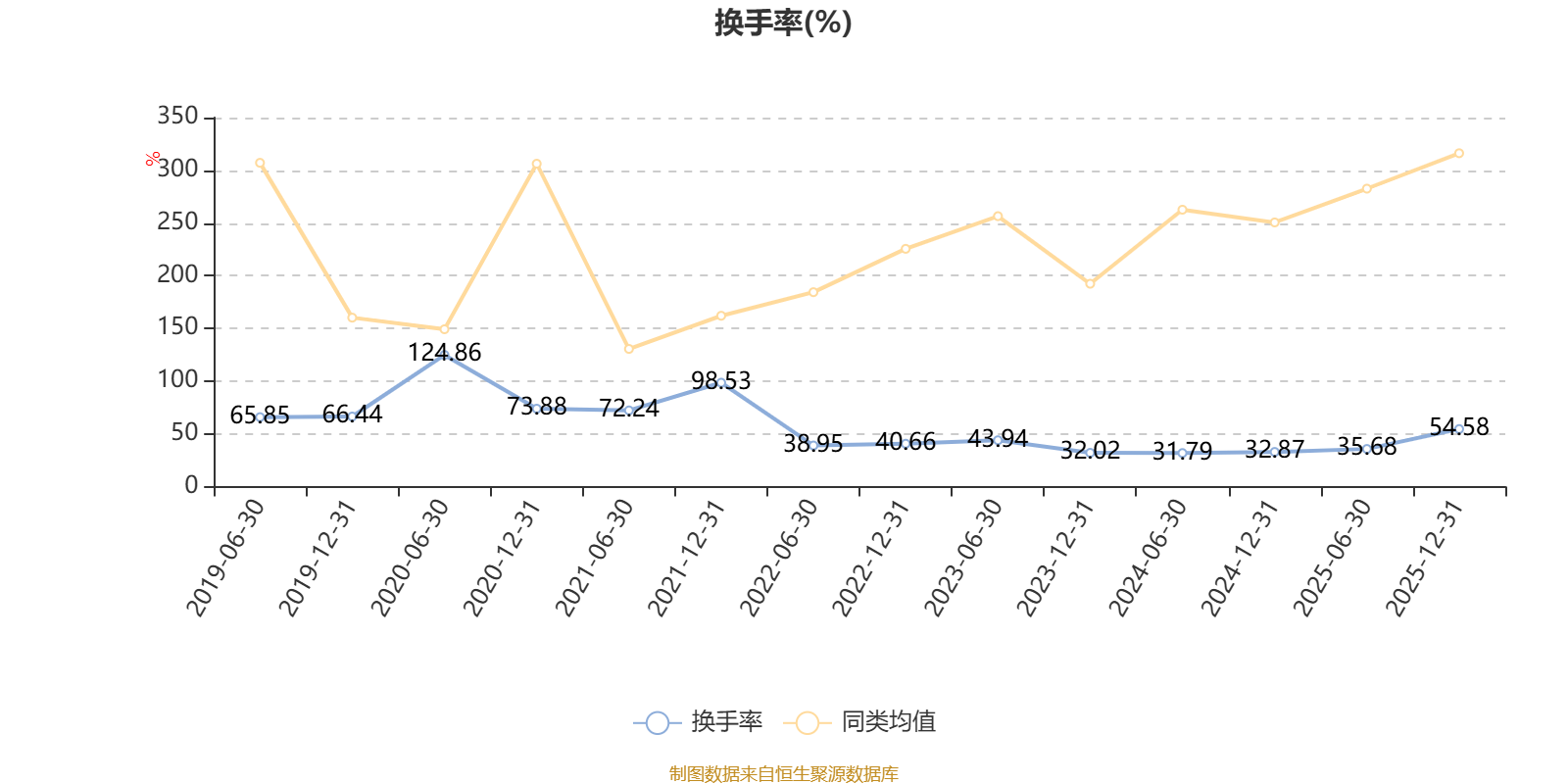 截至2025年12月31日,基金最近一年换手率约88.2%,持续低于同类均值。