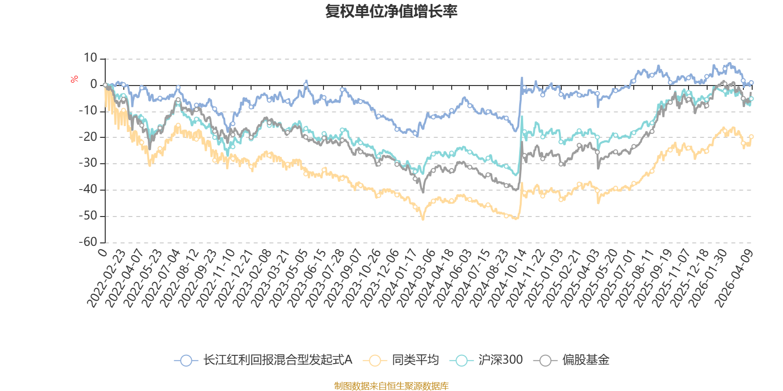 截至4月9日,长江红利回报混合型发起式A近三个月复权单位净值增长率为-5.01%,位于同类可比基金461/621;近半年复权单位净值增长率为-0.28%,位于同类可比基金342/621;近一年复权单位净值增长率为7.06%,位于同类可比基金584/618;近三年复权单位净值增长率为6.60%,位于同类可比基金353/559。