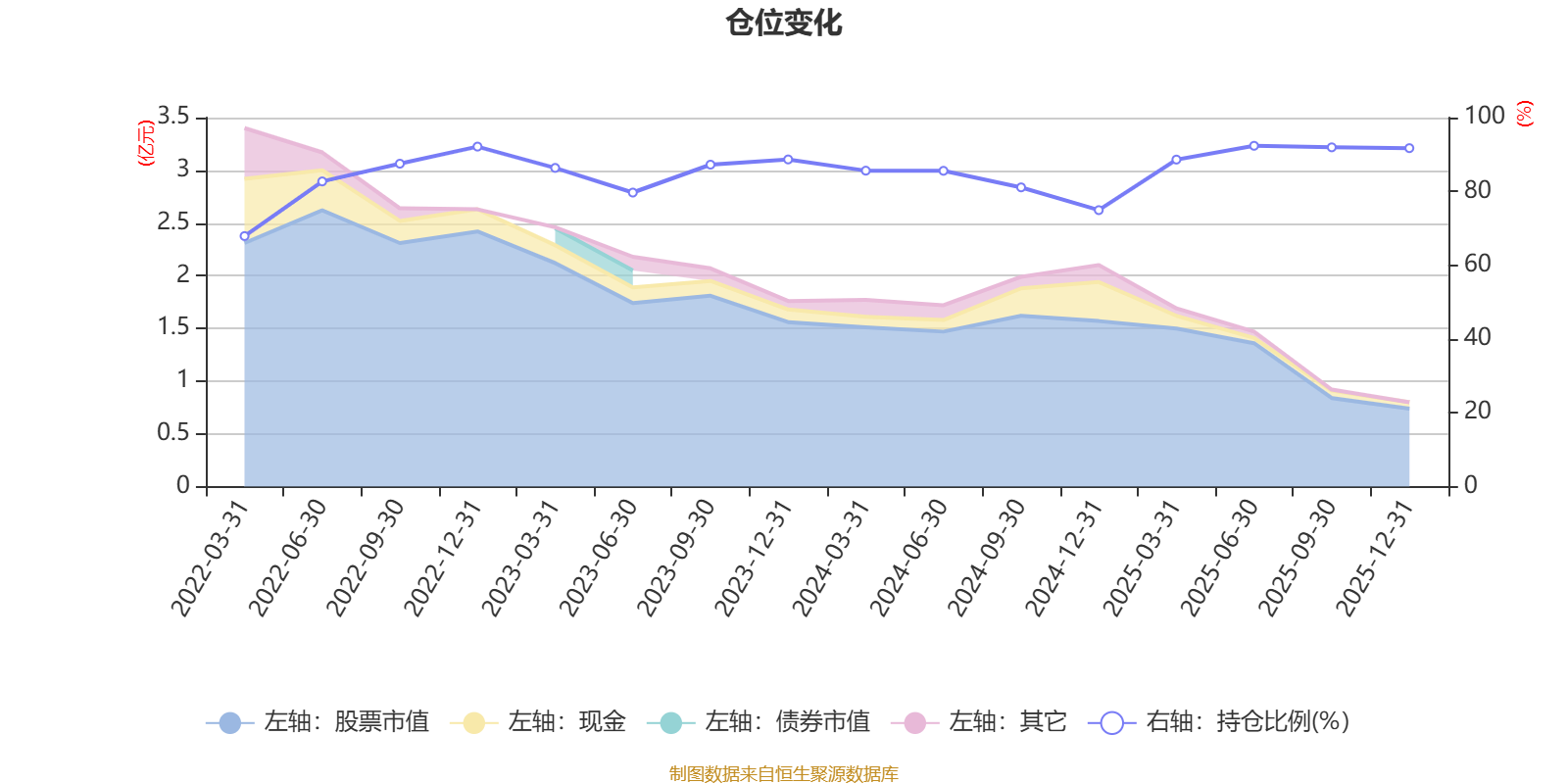 据定期报告数据统计,近三年平均股票仓位为86.15%,同类平均为85.83%。2025年上半年末基金达到92.36%的最高仓位,2022年一季度末最低,为67.89%。