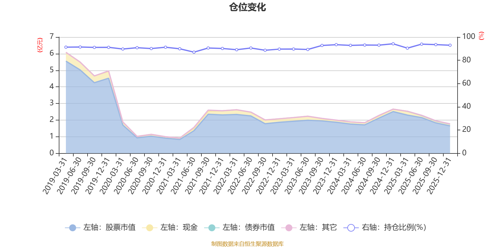 据定期报告数据统计,近三年平均股票仓位为92.44%,同类平均为88.34%。2024年末基金达到94.2%的最高仓位,2021年上半年末最低,为87.03%。