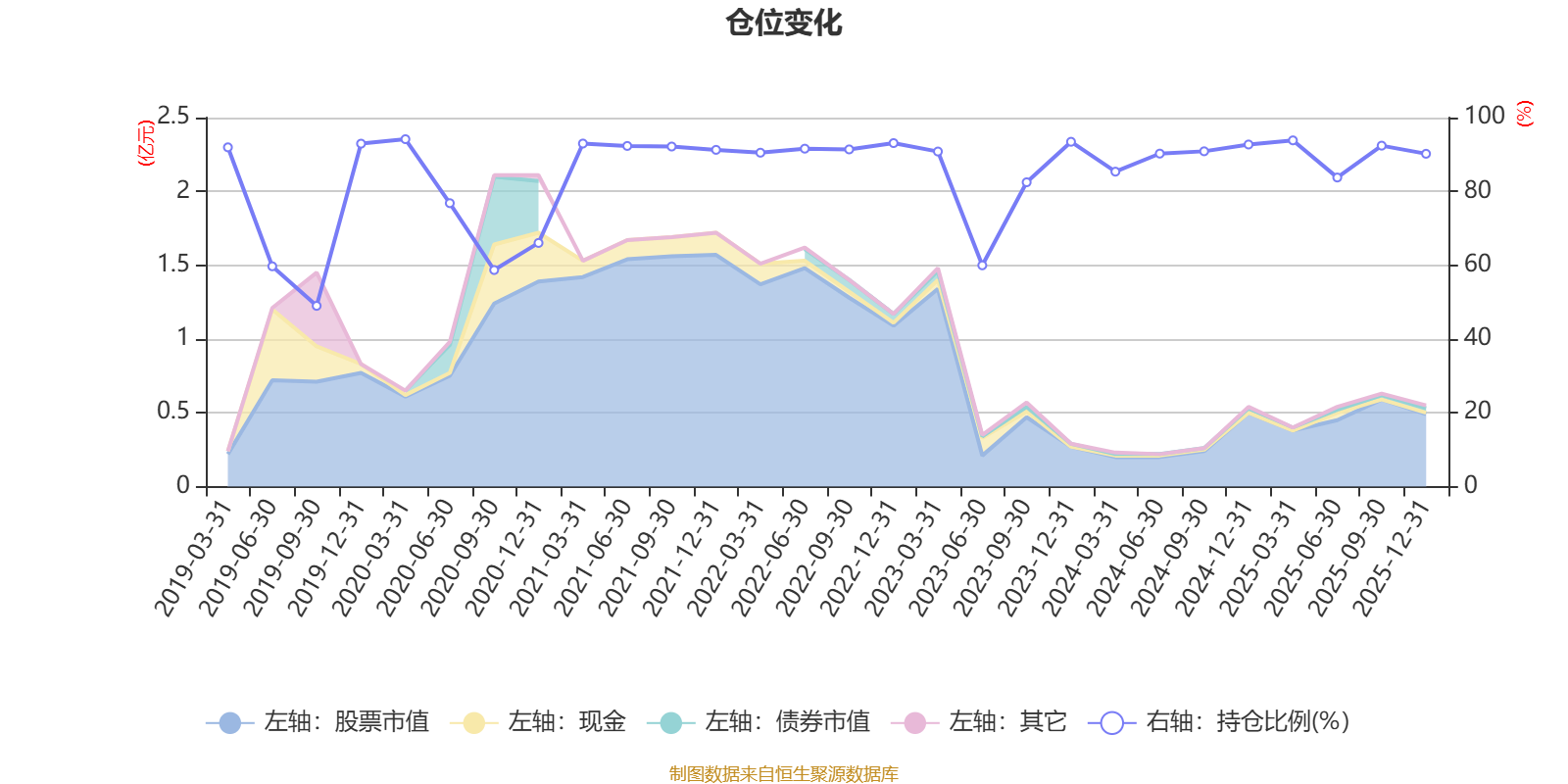 据定期报告数据统计,近三年平均股票仓位为87.17%,同类平均为67.52%。2020年一季度末基金达到94.15%的最高仓位,2019年三季度末最低,为48.98%。