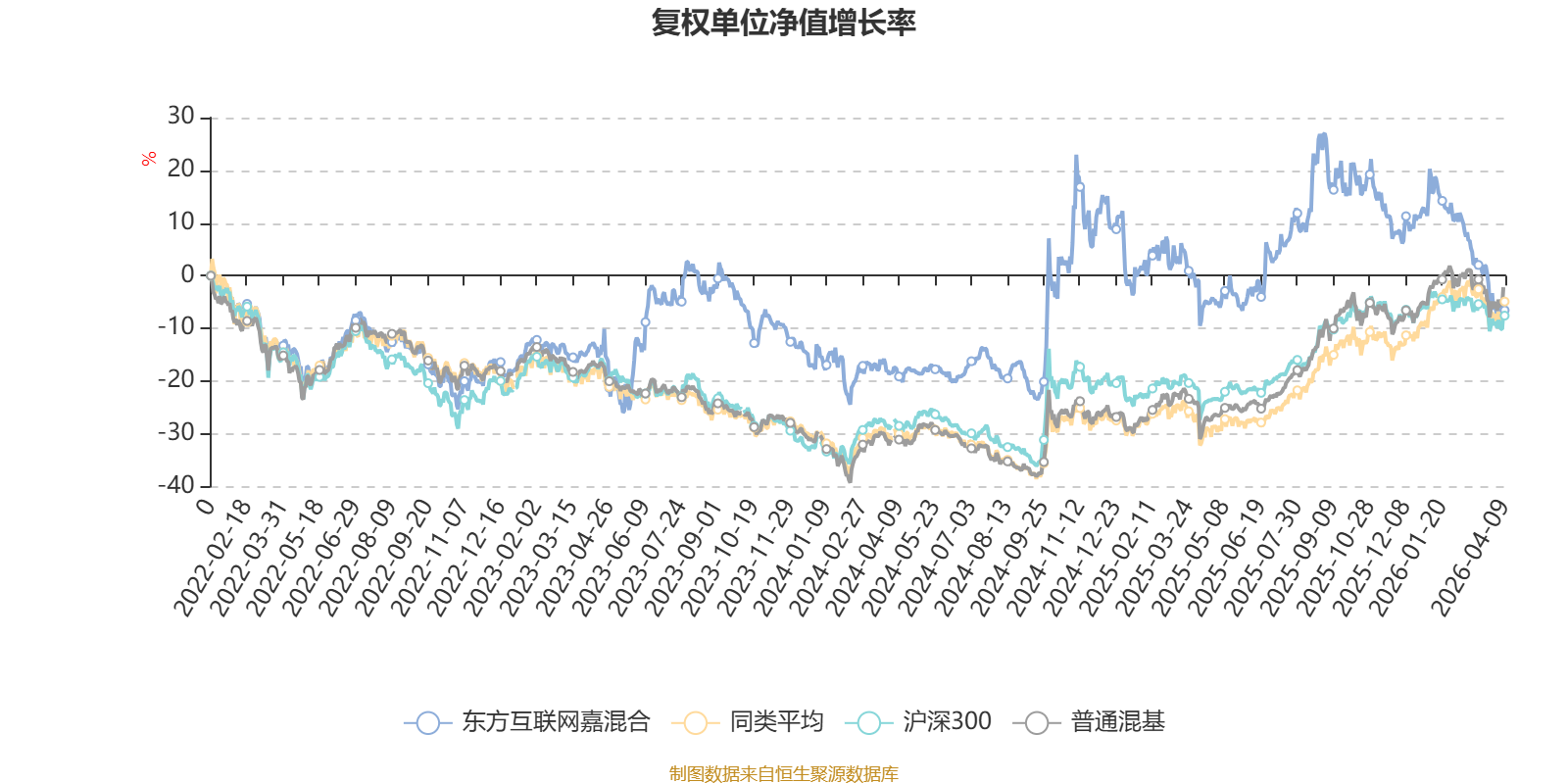 截至4月9日,东方互联网嘉混合近三个月复权单位净值增长率为-19.37%,位于同类可比基金133/134;近半年复权单位净值增长率为-23.03%,位于同类可比基金134/134;近一年复权单位净值增长率为-0.40%,位于同类可比基金131/134;近三年复权单位净值增长率为7.06%,位于同类可比基金82/126。