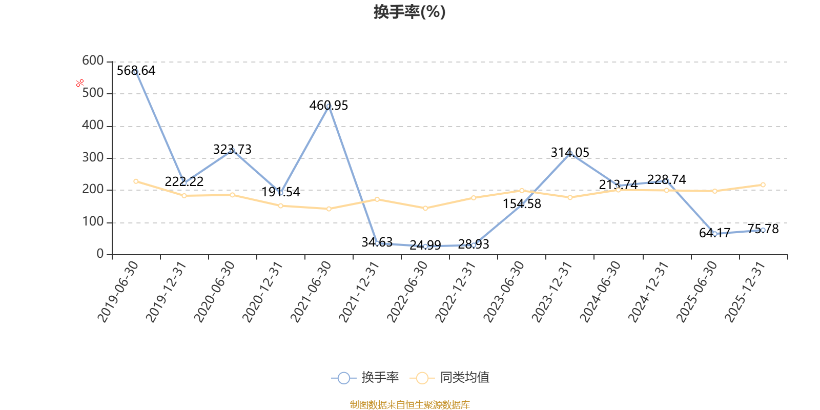 截至2025年12月31日,基金最近一年换手率约139.06%,持续1年低于同类均值。