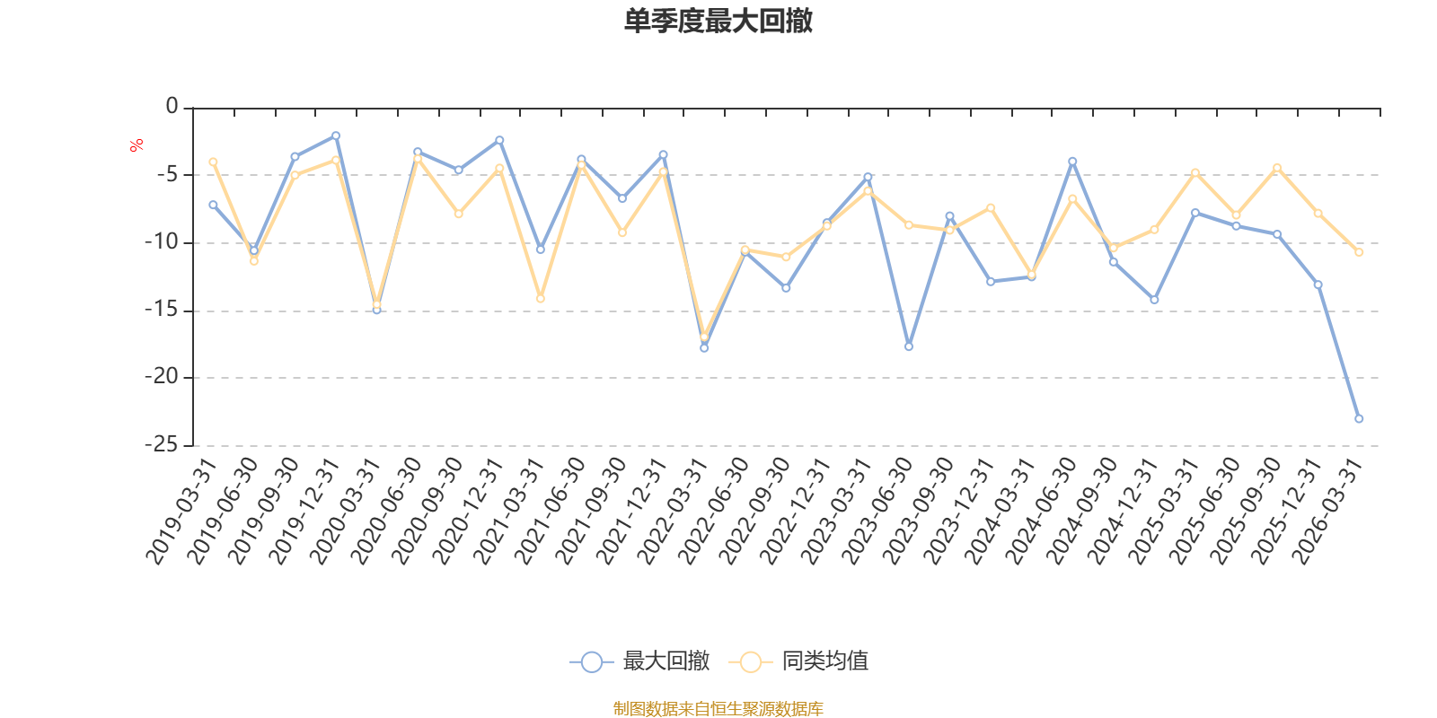 截至4月8日,基金近三年最大回撤为28.26%,同类可比基金排名77/122。单季度最大回撤出现在2026年一季度,为23.01%。
