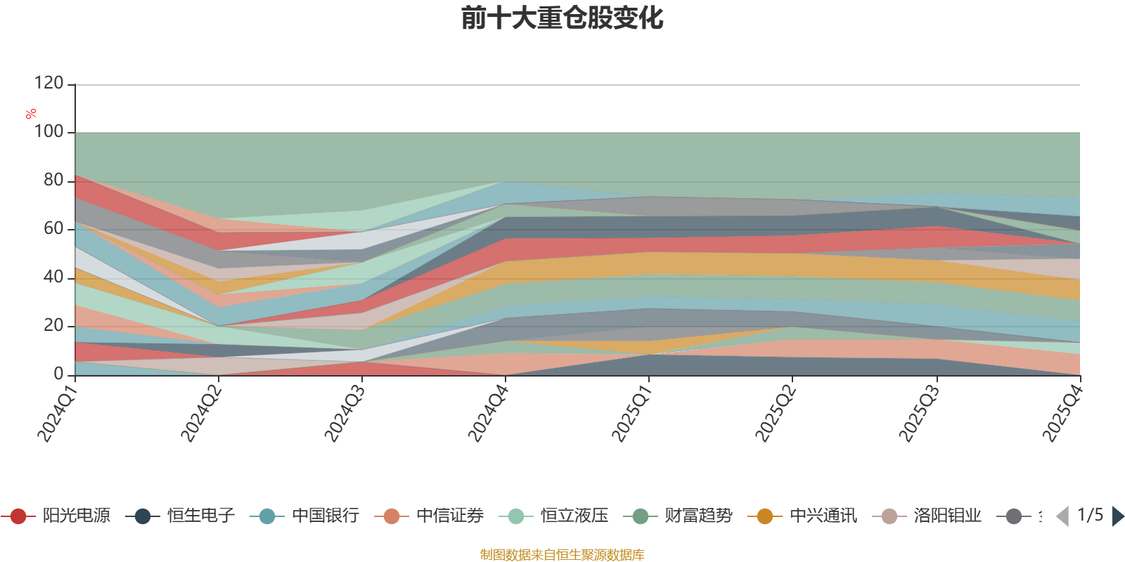 该基金持股集中度较高,近2年前十大重仓股集中度长期超过60%。截至2025年末,基金十大重仓股分别是指南针、中国平安、中信证券、同花顺、东方财富、新华保险、华泰证券、拓普集团、国泰海通、恒立液压。